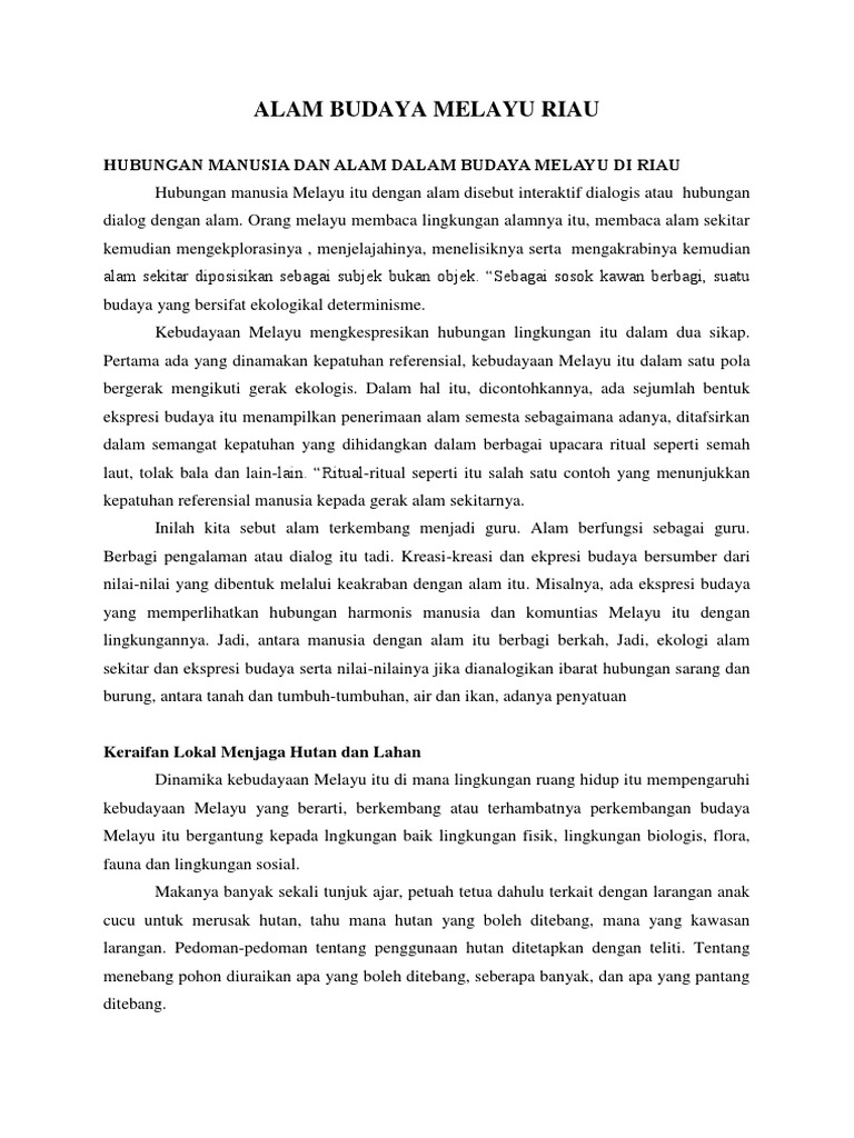 Alam Dalam Pandangan Budaya Melayu Riau Docx Alam Dalam Pandangan Budaya Melayu Riau Alam Sebagai Simbol Marwah Hubungan Manusia Melayu Itu Dengan Course Hero